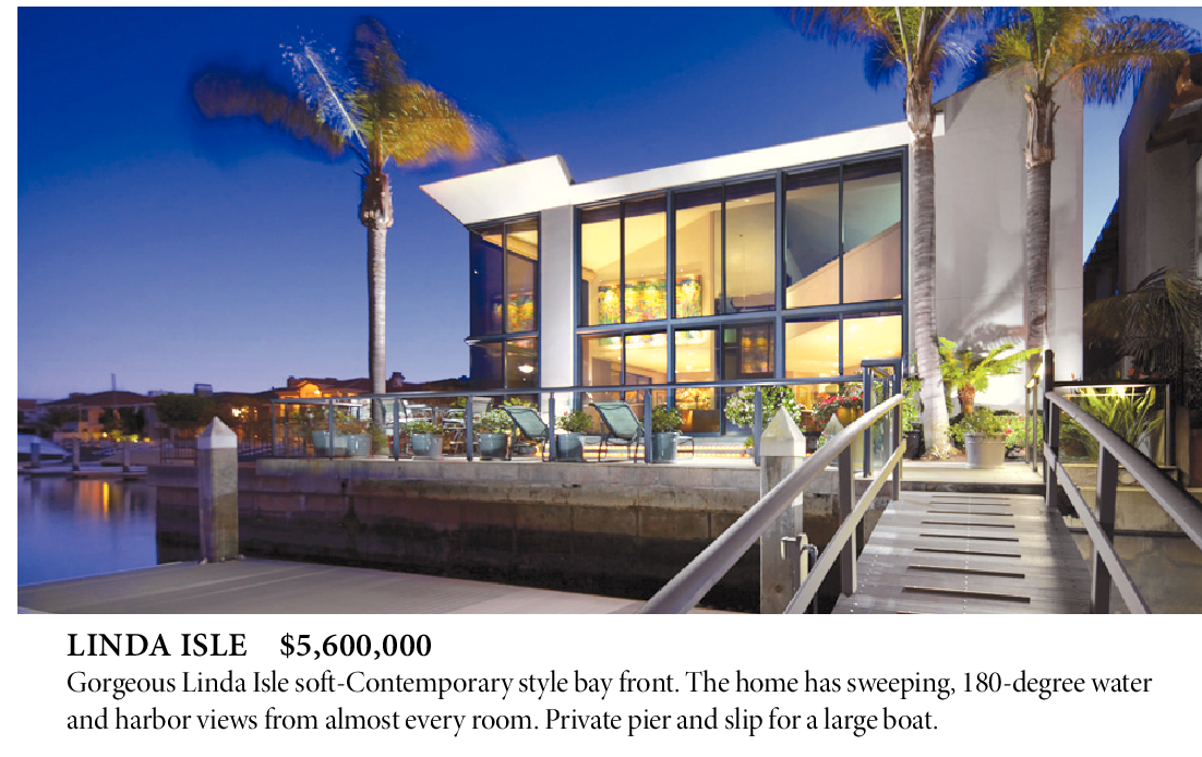 LINDA ISLE $5,600,000 Gorgeous Linda Isle soft-Contemporary style bay front. The home has sweeping, 180-degree water and harbor views from almost every room. Private pier and slip for a large boat.
