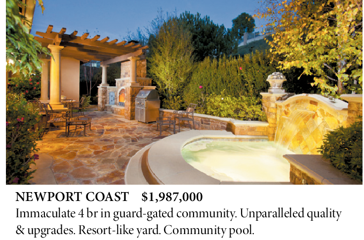 NEWPORT COAST $1,987,000 Immaculate 4 br in guard-gated community. Unparalleled quality & upgrades. Resort-like yard. Community pool.