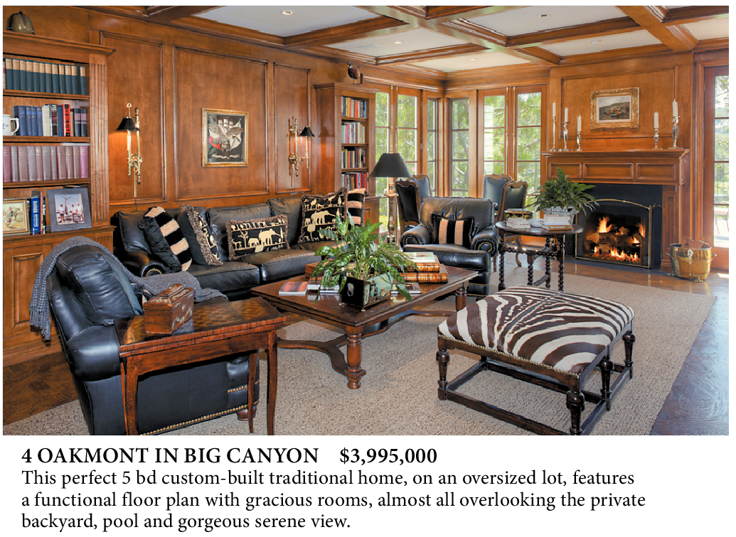 4 OAKMONT IN BIG CANYON $3,995,000 This perfect 5 bd custom-built traditional home, on an oversized lot, features a functional floor plan with gracious rooms, almost all overlooking the private backyard, pool and gorgeous serene view.