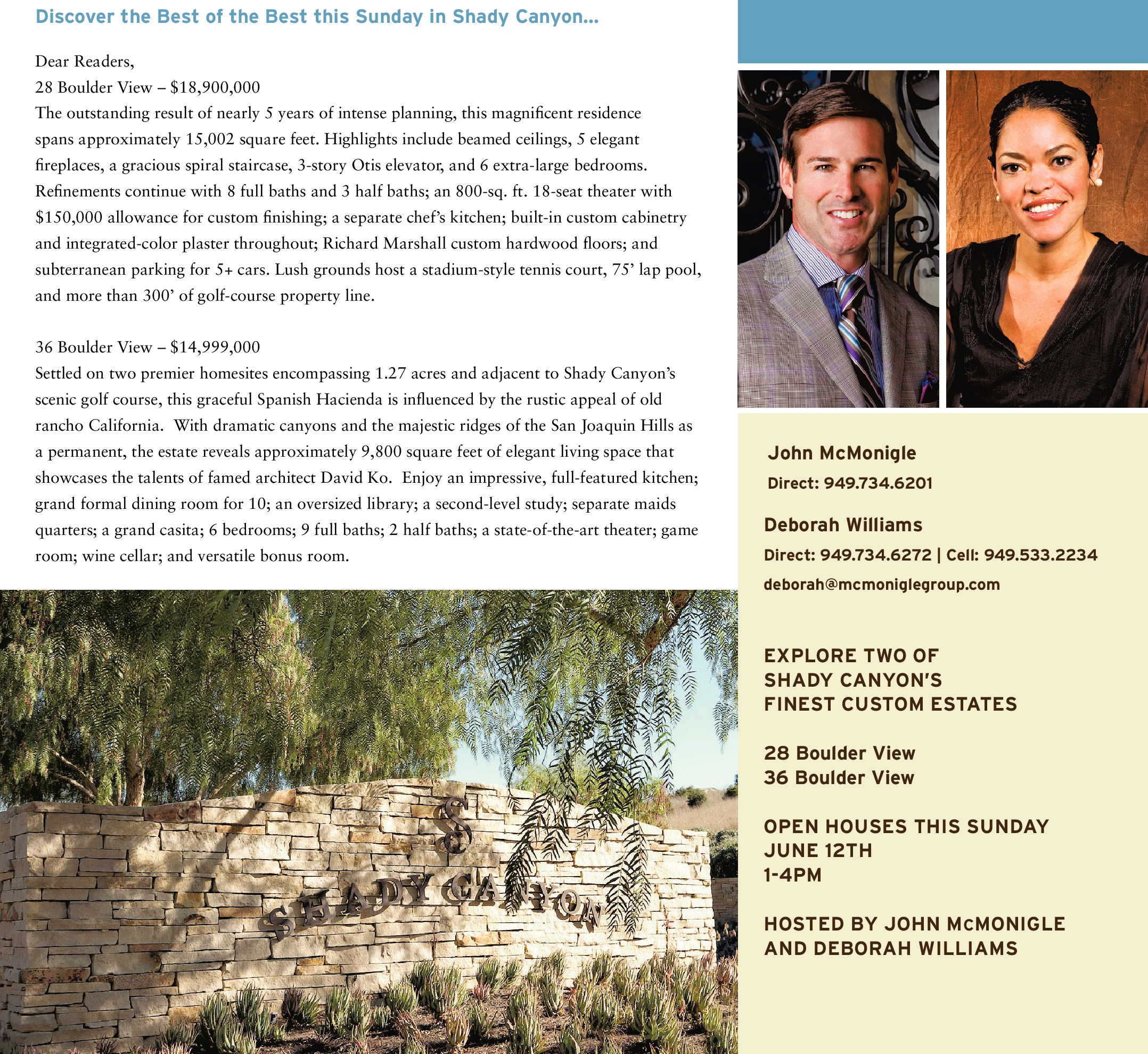 Deborah Williams Direct: 949.734.6272 | Cell: 949.533.2234 deborah@mcmoniglegroup.com