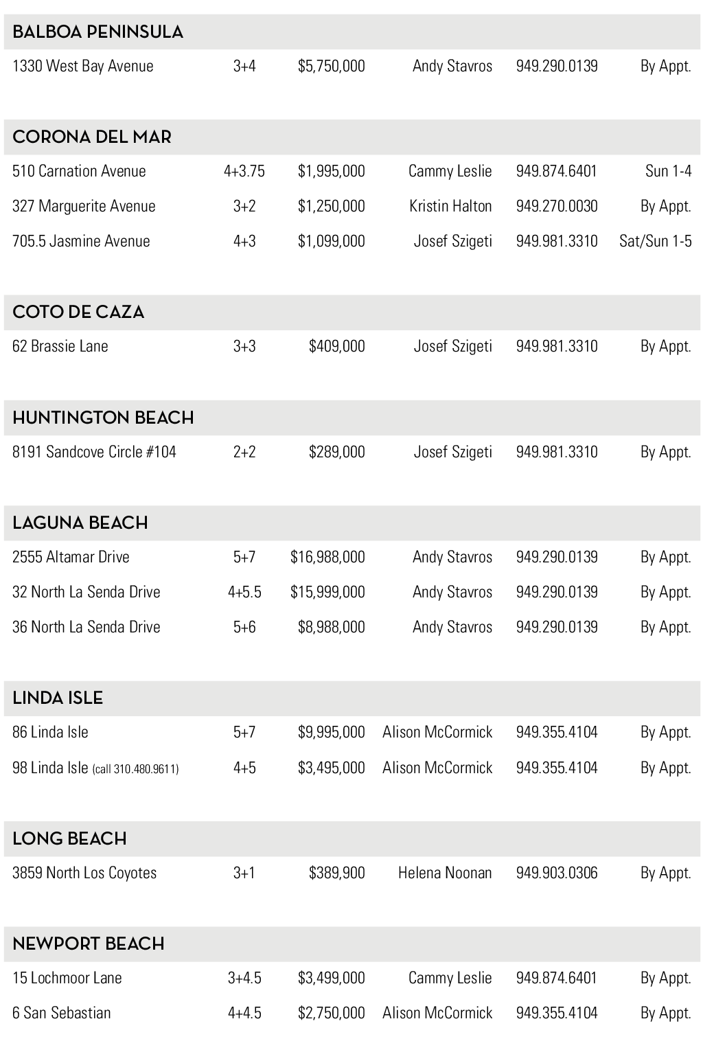 510 Carnation Avenue 4+3.75 $1,995,000 Cammy Leslie 949.874.6401 Sun 1-4