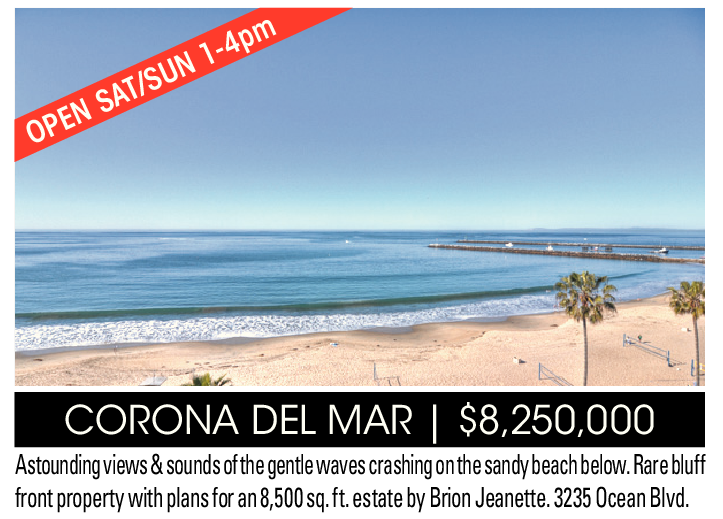 Astounding views & sounds of the gentle waves crashing on the sandy beach below. Rare bluff front property with plans for an 8,500 sq. ft. estate by Brion Jeanette. 3235 Ocean Blvd.