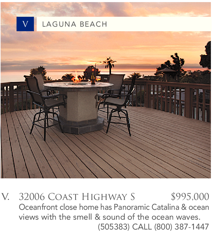 32006 Coast Highway S $995,000 Oceanfront close home has Panoramic Catalina & ocean views with the smell & sound of the ocean waves.