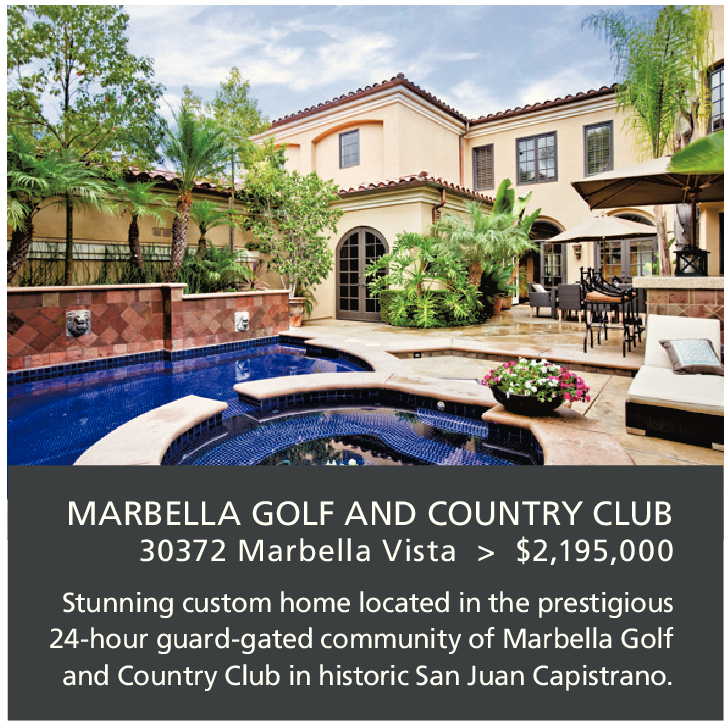 Stunning custom home located in the prestigious 24-hour guard-gated community of Marbella Golf and Country Club in historic San Juan Capistrano.