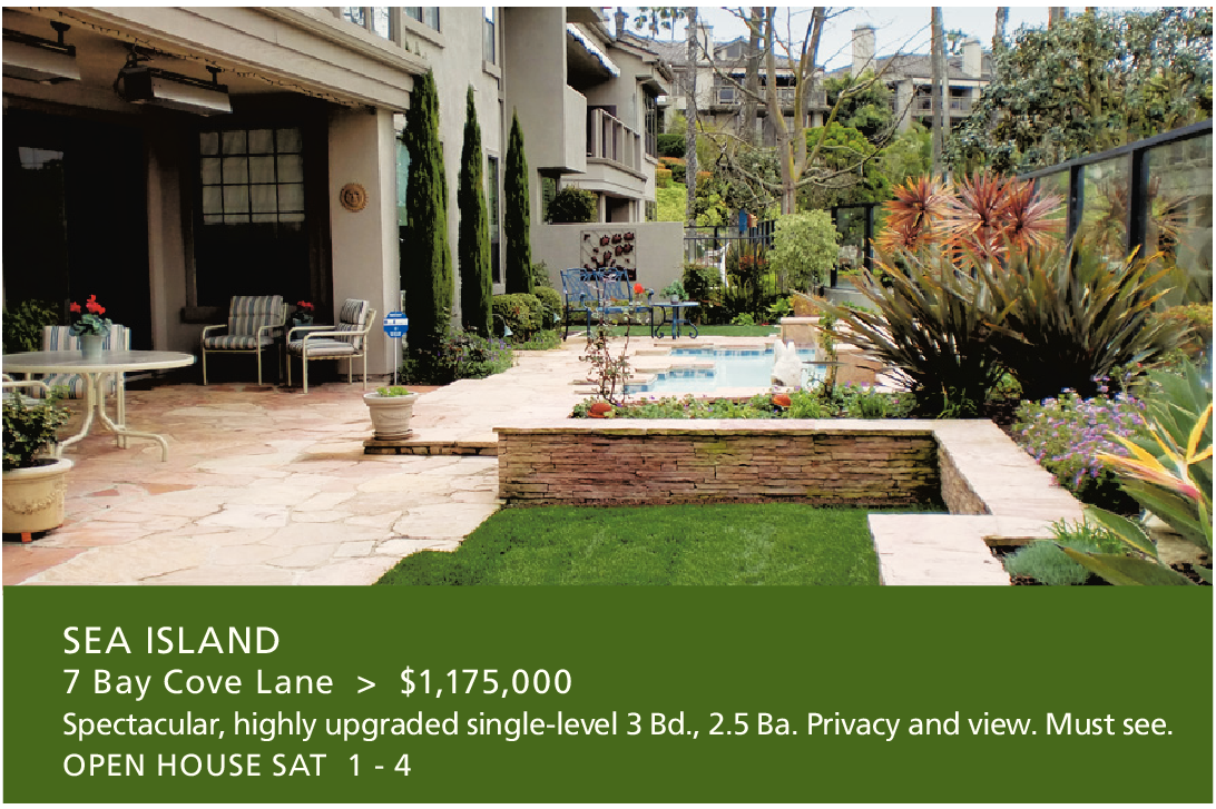 SEA ISLAND 7 Bay Cove Lane > $1,175,000 Spectacular,highlyupgradedsingle-level3Bd.,2.5Ba.Privacyandview.Mustsee. OPEN HOUSE SAT 1 - 4