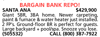 SANTA ANA $429,900 Giant 5BR, 3BA home. Newer carpeting, paint & furnace & water heater just installed.