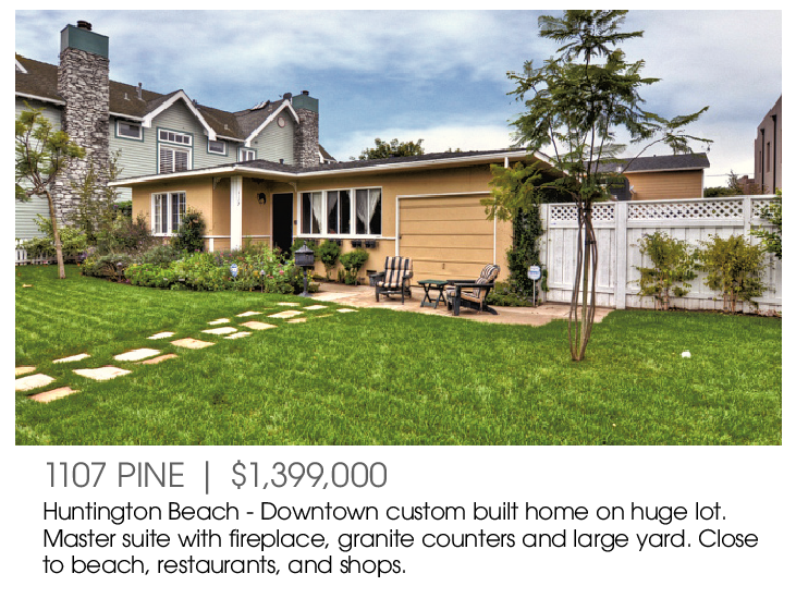 1107 PINE | $1,399,000 Huntington Beach - Downtown custom built home on huge lot. Master suite with fireplace, granite counters and large yard. Close to beach, restaurants, and shops.