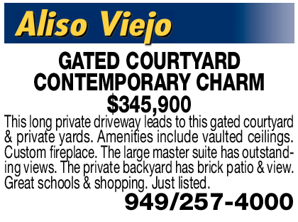 GATED COURTYARD CONTEMPORARY CHARM $345,900 This long private driveway leads to this gated courtyard & private yards. Amenities include vaulted ceilings. Custom fireplace. The large master suite has outstanding views. The private backyard has brick patio & view.