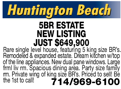 NEW LISTING JUST $649,900 Rare single level house, featuring 5 king size BR’s. Remodeled & expanded estate. Dream kitchen w/top of the line appliances. New dual pane windows. Large frml liv rm. Spacious dining area. Party size family rm. Private wing of king size BR’s. Priced to sell! Be the 1st to call! 714/969-6100