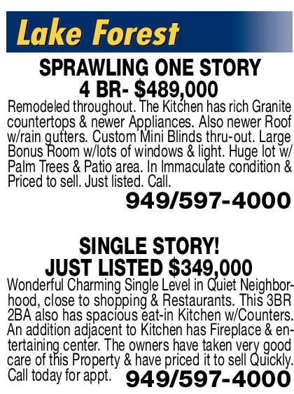 An addition adjacent to Kitchen has Fireplace & entertaining center. The owners have taken very good care of this Property & have priced it to sell Quickly. Call today for appt. 949/597-4000