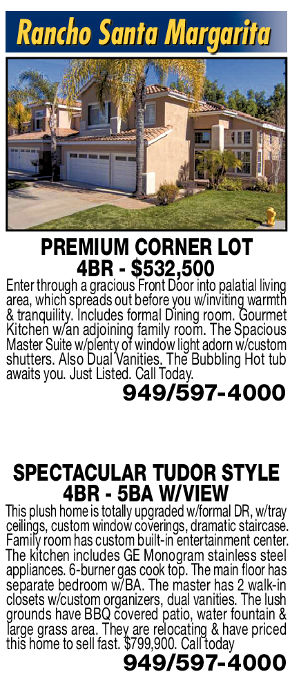 grounds have BBQ covered patio, water fountain & large grass area. They are relocating & have priced this home to sell fast. $799,900. Call today 949/597-4000