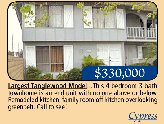 Largest Tanglewood Model...This 4 bedroom 3 bath townhome is an end unit with no one above or below. Remodeled kitchen, family room off kitchen overlooking greenbelt. Call to see!