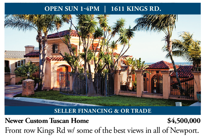 SELLER FINANCING & OR TRADE Newer Custom Tuscan Home $4,500,000 Front row Kings Rd w/ some of the best views in all of Newport.