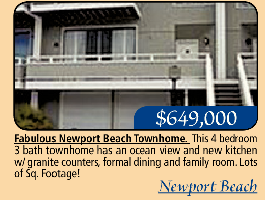 Fabulous Newport Beach Townhome. This 4 bedroom 3 bath townhome has an ocean view and new kitchen w/ granite counters, formal dining and family room. Lots of Sq. Footage!