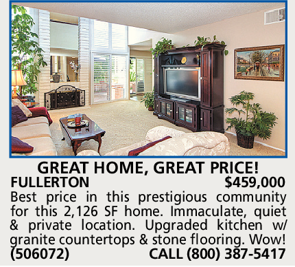 FULLERTON $459,000 Best price in this prestigious community for this 2,126 SF home. Immaculate, quiet & private location. Upgraded kitchen w/ granite countertops & stone flooring. Wow!