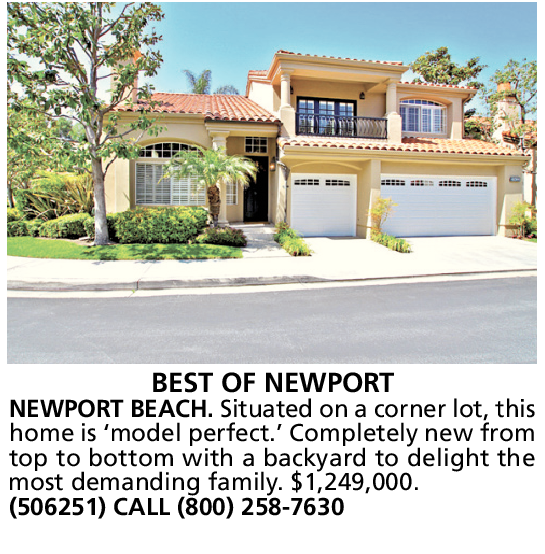 BEST OF NEWPORT NEWPORT BEACH. Situated on a corner lot, this home is ‘model perfect.’ Completely new from top to bottom with a backyard to delight the most demanding family. $1,249,000.