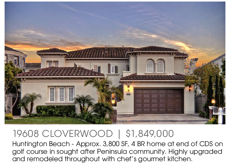 19608 CLOVERWOOD | $1,849,000 Huntington Beach - Approx. 3,800 SF, 4 BR home at end of CDS on golf course in sought after Peninsula community. Highly upgraded and remodeled throughout with chef’s gourmet kitchen.