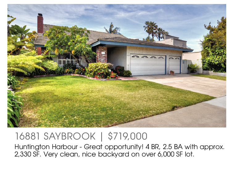 16881 SAYBROOK | $719,000 Huntington Harbour - Great opportunity! 4 BR, 2.5 BA with approx. 2,330 SF. Very clean, nice backyard on over 6,000 SF lot.