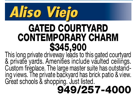 GATED COURTYARD CONTEMPORARY CHARM $345,900 This long private driveway leads to this gated courtyard & private yards. Amenities include vaulted ceilings. Custom fireplace. The large master suite has outstanding views. The private backyard has brick patio & view.