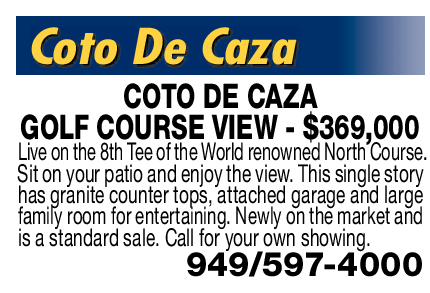 Coto De Caza COTO DE CAZA GOLF COURSE VIEW - $369,000 Live on the 8th Tee of the World renowned North Course. Sit on your patio and enjoy the view. This single story has granite counter tops, attached garage and large family room for entertaining. Newly on the market and is a standard sale. Call for your own showing. 949/597-4000