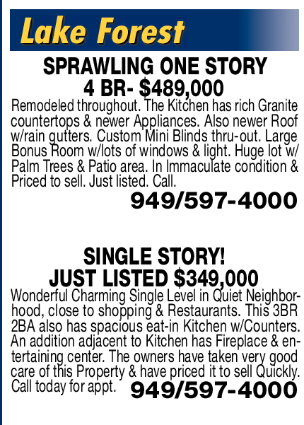 An addition adjacent to Kitchen has Fireplace & entertaining center. The owners have taken very good care of this Property & have priced it to sell Quickly. Call today for appt. 949/597-4000