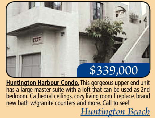 Huntington Harbour Condo. This gorgeous upper end unit has a large master suite with a loft that can be used as 2nd bedroom. Cathedral ceilings, cozy living room fireplace, brand new bath w/granite counters and more. Call to see!