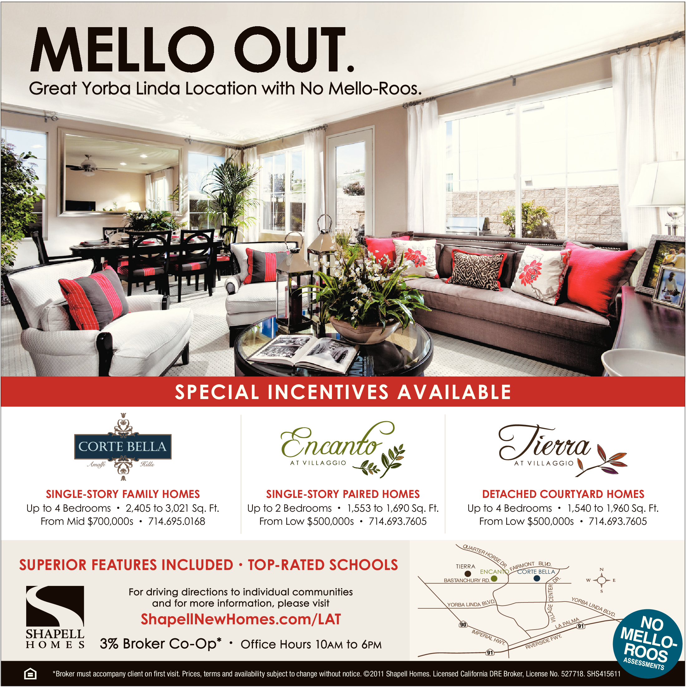 *Broker must accompany client on fi rst visit. Prices, terms and availability subject to change without notice. ©2011 Shapell Homes. Licensed California DRE Broker, License No. 527718. SHS415611