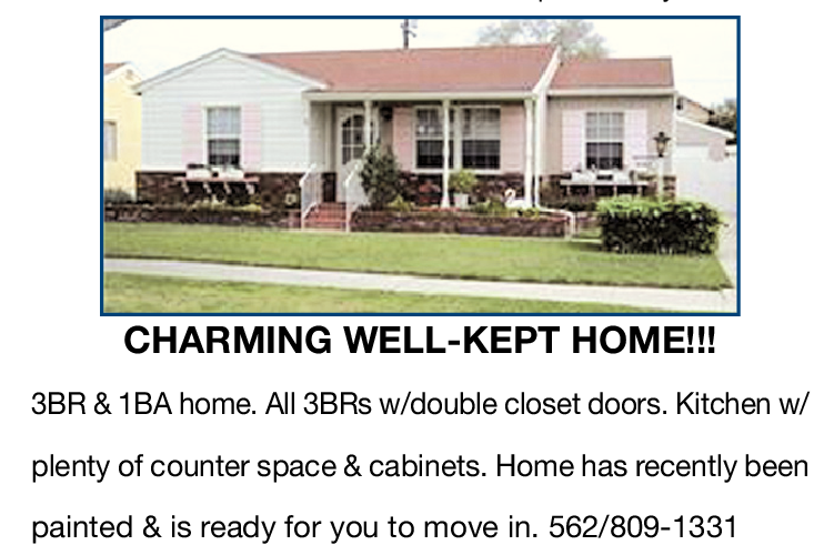 3BR & 1BA home. All 3BRs w/double closet doors. Kitchen w/
