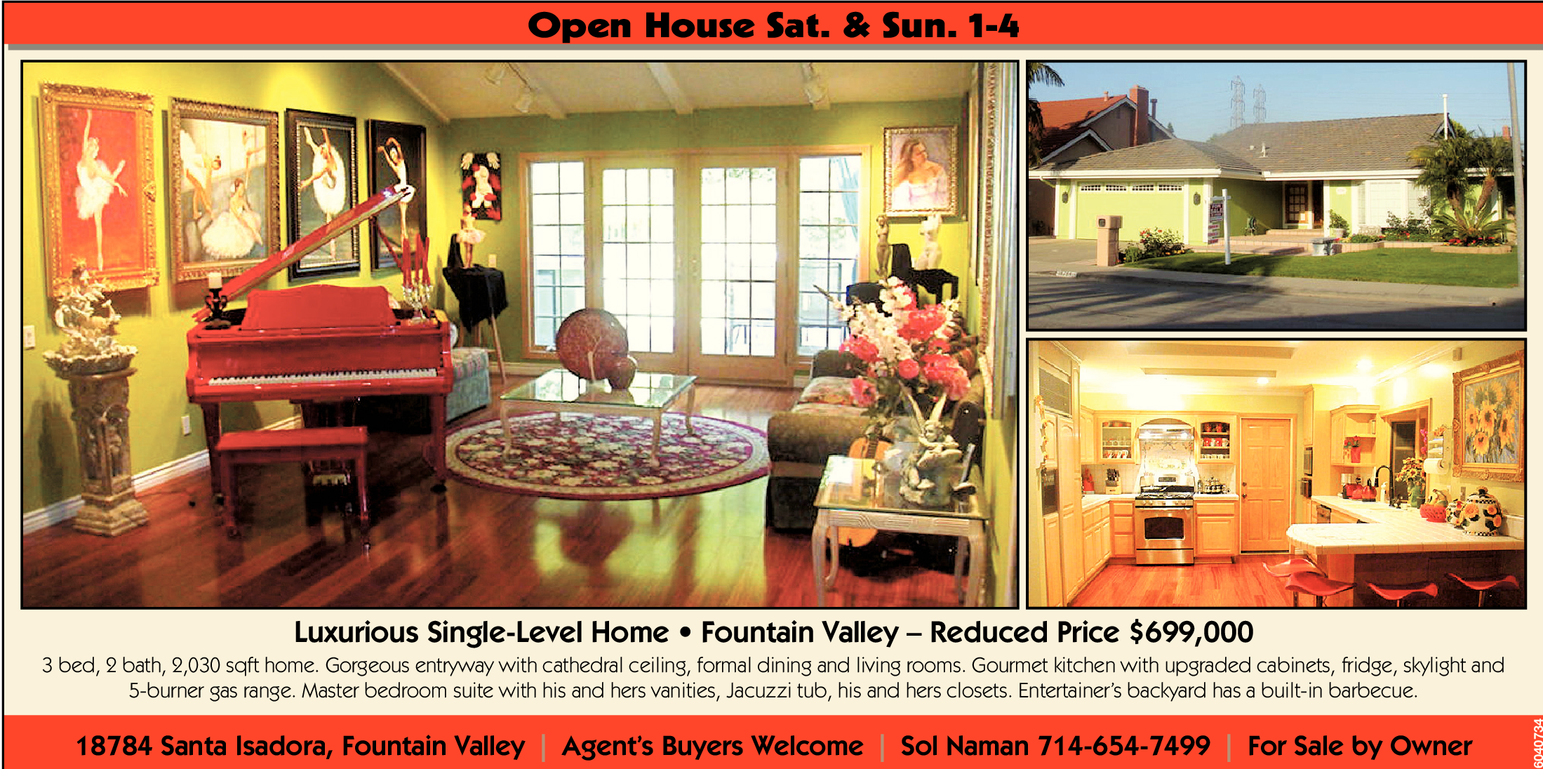 18784 Santa Isadora, Fountain Valley | Agent’s Buyers Welcome | Sol Naman 714-654-7499 | For Sale by Owner