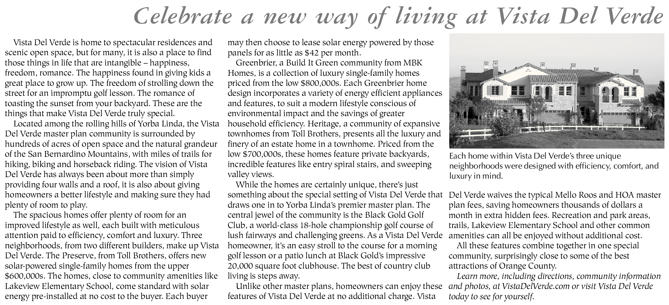 Celebrate a new way of living at Vista Del Verde