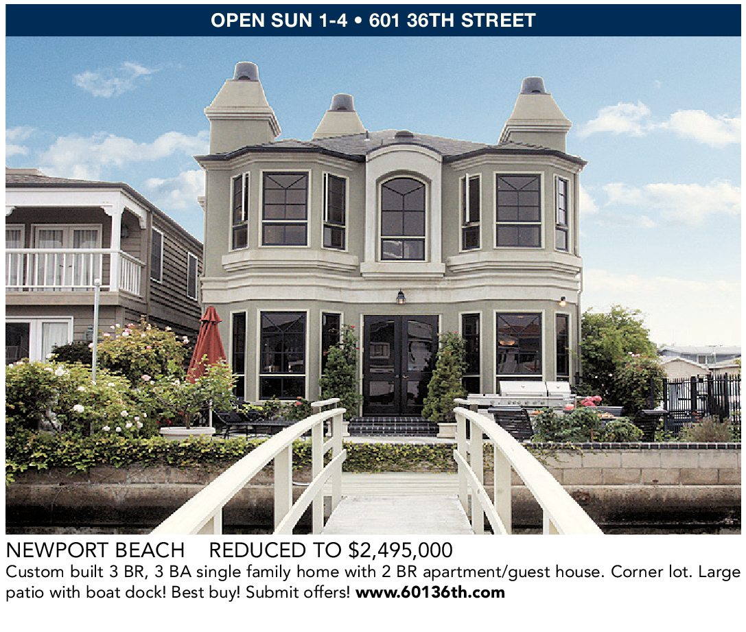NEWPORT BEACH REDUCED TO $2,495,000 Custom built 3 BR, 3 BA single family home with 2 BR apartment/guest house. Corner lot. Large patio with boat dock! Best buy! Submit offers! www.60136th.com