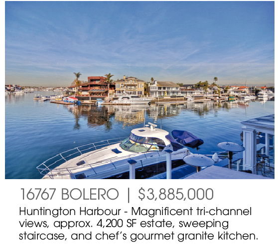 16767 BOLERO | $3,885,000 Huntington Harbour - Magnificent tri-channel views, approx. 4,200 SF estate, sweeping staircase, and chef’s gourmet granite kitchen.