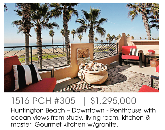 1516 PCH #305 | $1,295,000 Huntington Beach – Downtown - Penthouse with ocean views from study, living room, kitchen & master. Gourmet kitchen w/granite.