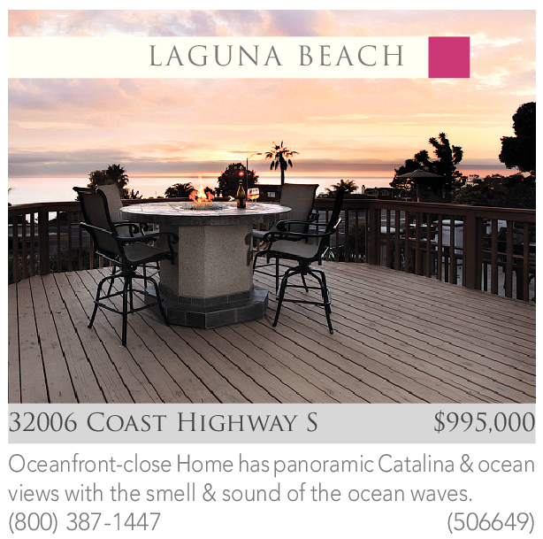 32006 Coast Highway S $995,000 Oceanfront-close Home has panoramic Catalina & ocean views with the smell & sound of the ocean waves. (800) 387-1447 (506649)
