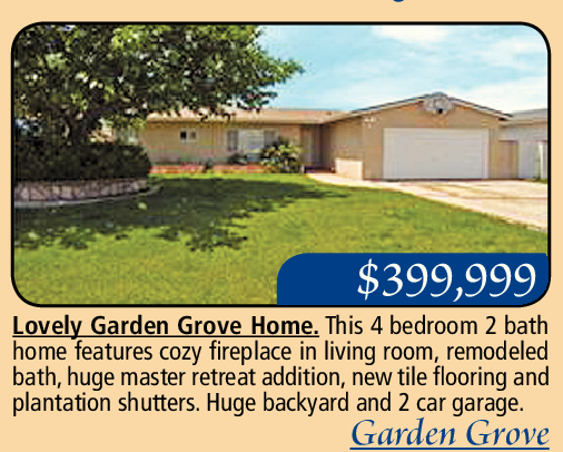 Lovely Garden Grove Home. This 4 bedroom 2 bath home features cozy fireplace in living room, remodeled bath, huge master retreat addition, new tile flooring and plantation shutters. Huge backyard and 2 car garage.