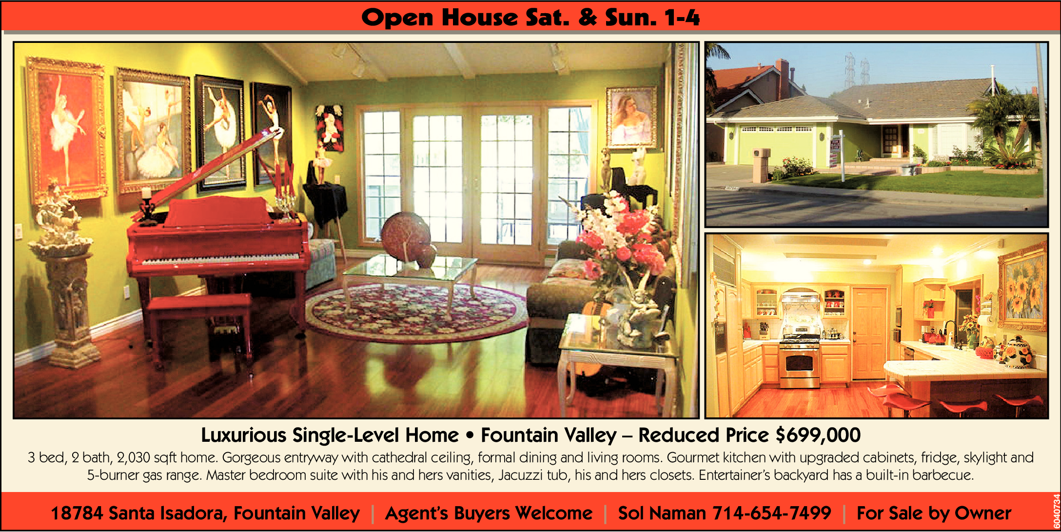 18784 Santa Isadora, Fountain Valley | Agent’s Buyers Welcome | Sol Naman 714-654-7499 | For Sale by Owner