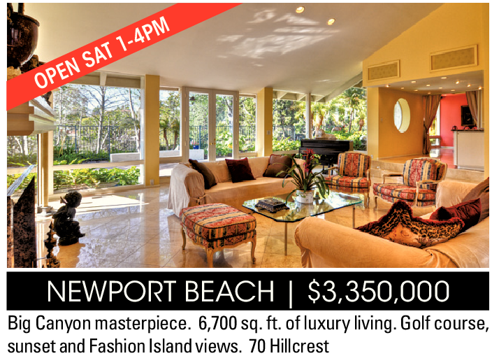 Big Canyon masterpiece. 6,700 sq. ft. of luxury living. Golf course, sunset and Fashion Island views. 70 Hillcrest