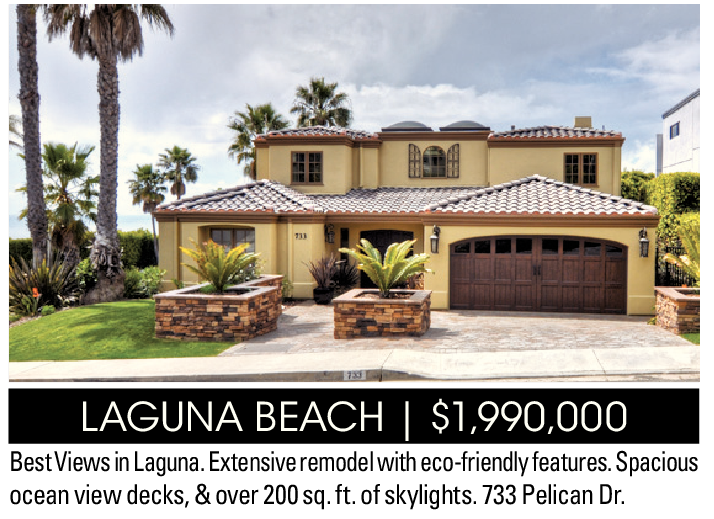 Best Views in Laguna. Extensive remodel with eco-friendly features. Spacious ocean view decks, & over 200 sq. ft. of skylights. 733 Pelican Dr.