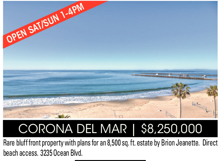 Rare bluff front property with plans for an 8,500 sq. ft. estate by Brion Jeanette. Direct beach access. 3235 Ocean Blvd.