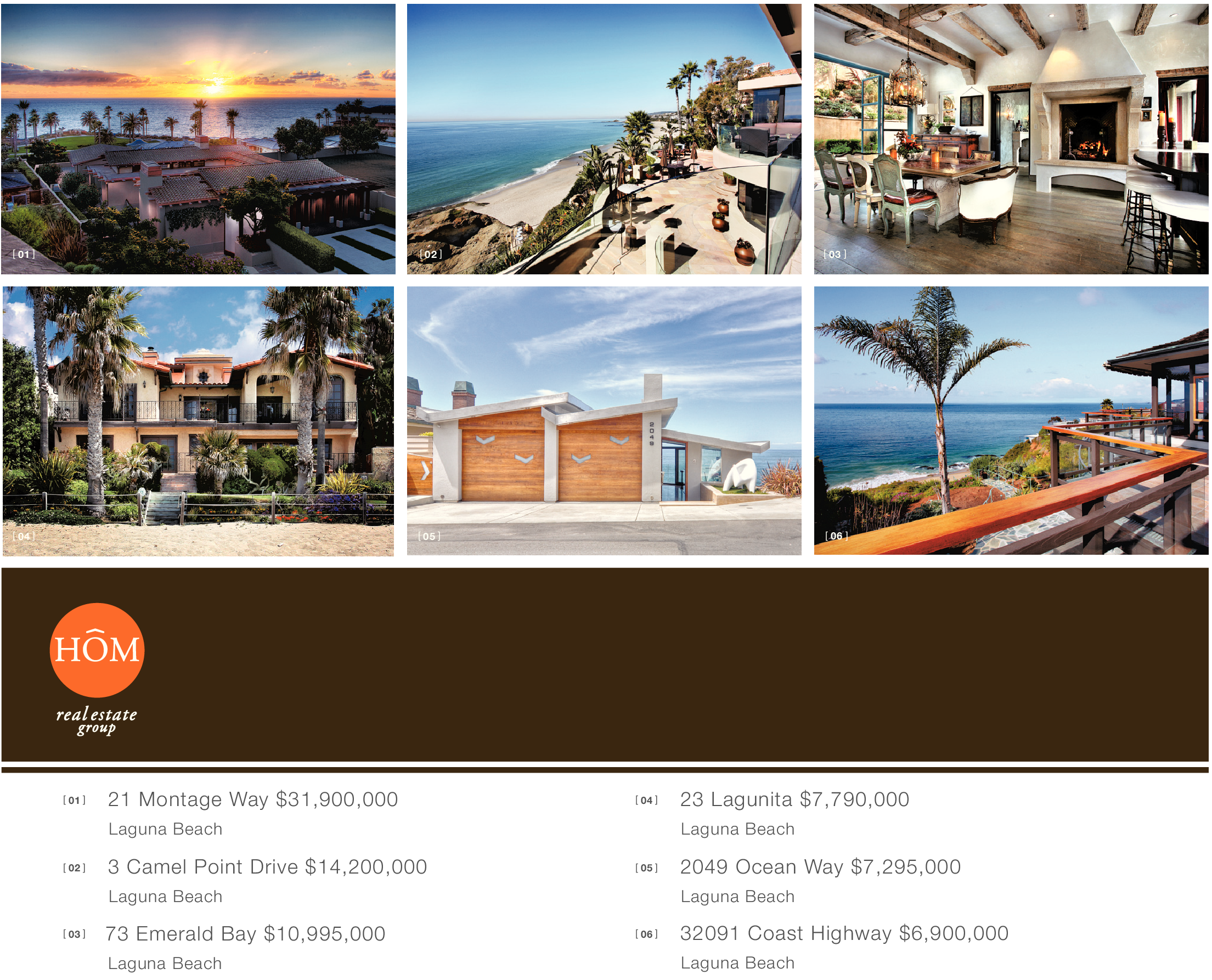 [ 01 ] [ 02 ] [ 03 ] [ 04 ] [ 05 ] [ 06 ] [ 01 ] [ 02 ] [ 03 ] 21 Montage Way $31,900,000 Laguna Beach 3 Camel Point Drive $14,200,000 Laguna Beach 73 Emerald Bay $10,995,000 Laguna Beach 23 Lagunita $7,790,000 Laguna Beach [ 04 ] [ 05 ] [ 06 ] 2049 Ocean Way $7,295,000 Laguna Beach 32091 Coast Highway $6,900,000 Laguna Beach