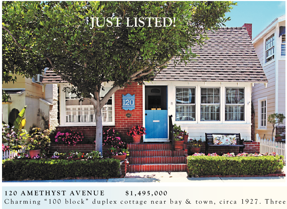 120 AMETHYST AVENUE $1,495,000 Charming “100 block” duplex cottage near bay & town, circa 1927. Three