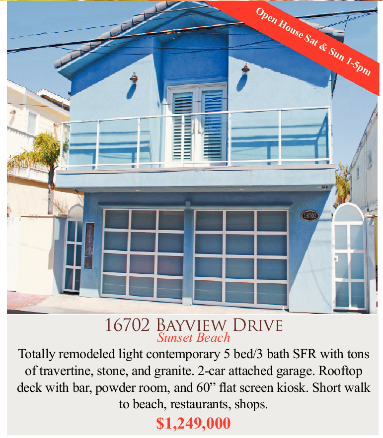 Sunset Beach Totally remodeled light contemporary 5 bed/3 bath SFR with tons of travertine, stone, and granite. 2-car attached garage. Rooftop deck with bar, powder room, and 60” flat screen kiosk. Short walk to beach, restaurants, shops.