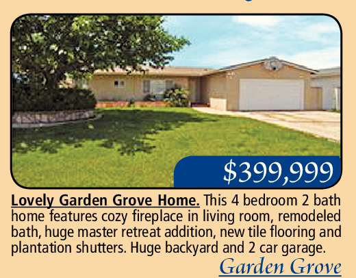 Lovely Garden Grove Home. This 4 bedroom 2 bath home features cozy fireplace in living room, remodeled bath, huge master retreat addition, new tile flooring and plantation shutters. Huge backyard and 2 car garage.