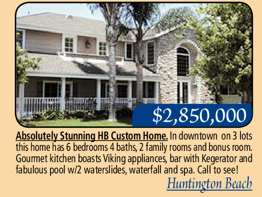 $2,850,000 Absolutely Stunning HB Custom Home. In downtown on 3 lots this home has 6 bedrooms 4 baths, 2 family rooms and bonus room. Gourmet kitchen boasts Viking appliances, bar with Kegerator and fabulous pool w/2 waterslides, waterfall and spa. Call to see! Huntington Beach