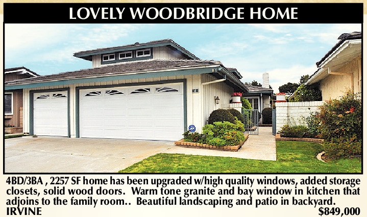 4BD/3BA , 2257 SF home has been upgraded w/high quality windows, added storage closets, solid wood doors. Warm tone granite and bay window in kitchen that adjoins to the family room.. Beautiful landscaping and patio in backyard. IRVINE $849,000