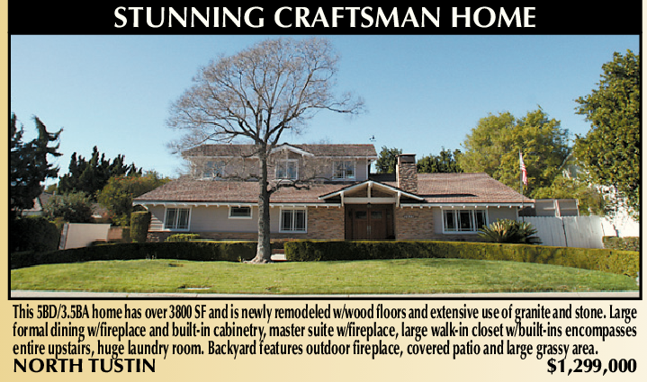 STUNNING CRAFTSMAN HOME This 5BD/3.5BA home has over 3800 SF and is newly remodeled w/wood floors and extensive use of granite and stone. Large formal dining w/fireplace and built-in cabinetry, master suite w/fireplace, large walk-in closet w/built-ins encompasses entire upstairs, huge laundry room. Backyard features outdoor fireplace, covered patio and large grassy area. NORTH TUSTIN $1,299,000