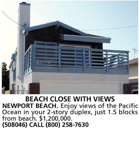 BEACH CLOSE WITH VIEWS NEWPORT BEACH. Enjoy views of the Pacific Ocean in your 2-story duplex, just 1.5 blocks from beach. $1,200,000.
