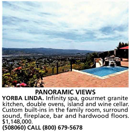 PANORAMIC VIEWS YORBA LINDA. Infinity spa, gourmet granite kitchen, double ovens, island and wine cellar.