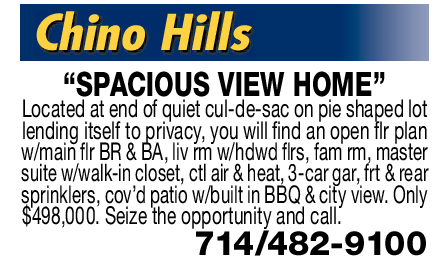“SPACIOUS VIEW HOME” Located at end of quiet cul-de-sac on pie shaped lot lending itself to privacy, you will find an open flr plan w/main flr BR & BA, liv rm w/hdwd flrs, fam rm, master suite w/walk-in closet, ctl air & heat, 3-car gar, frt & rear sprinklers, cov’d patio w/built in BBQ & city view. Only $498,000. Seize the opportunity and call.