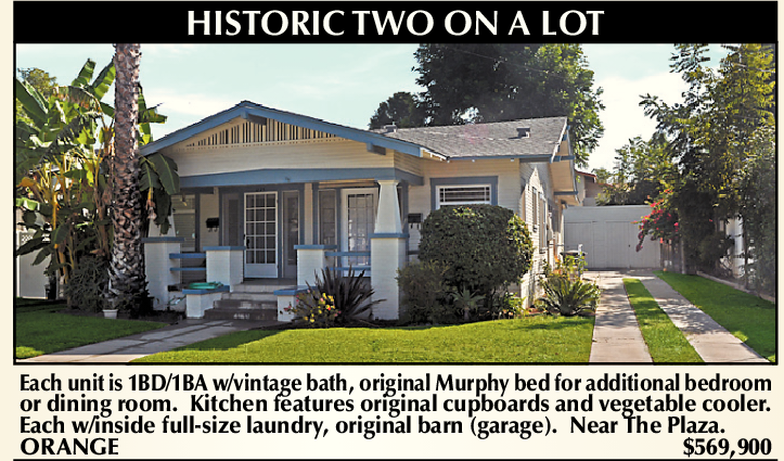 HISTORIC TWO ON A LOT Each unit is 1BD/1BA w/vintage bath, original Murphy bed for additional bedroom or dining room. Kitchen features original cupboards and vegetable cooler. Each w/inside full-size laundry, original barn (garage). Near The Plaza. ORANGE $569,900